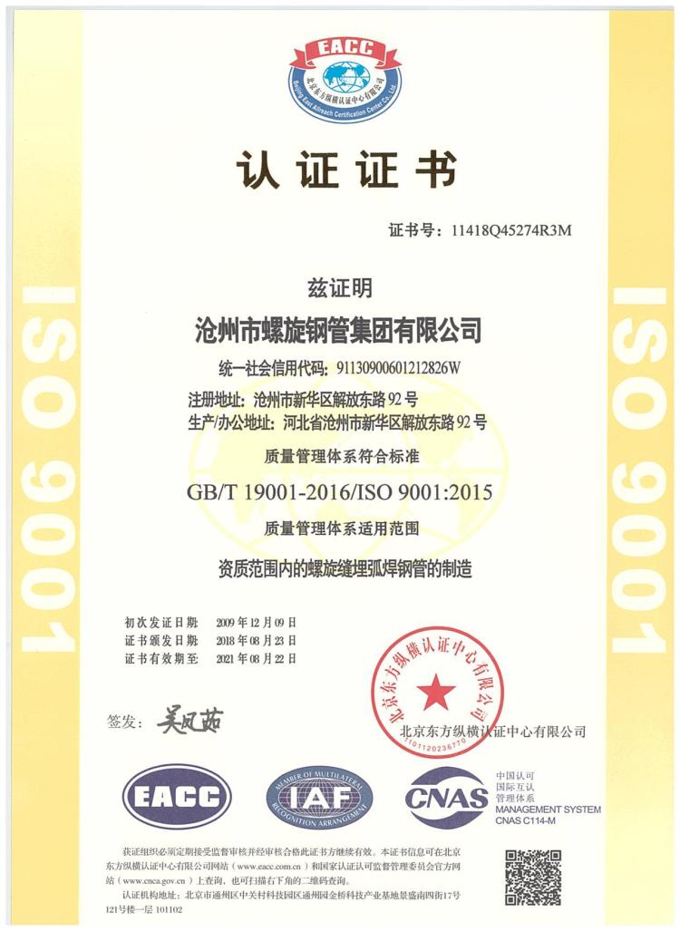 滄州市螺旋鋼管集團有限公司(原名為滄州市螺旋鋼管(集團)有限責任公司)位于滄州市解放東路92號,是集螺旋鋼管的生產加工和防腐保溫為一體的企業,是河北省大型二檔企業、河北省重點冶金企業。集團公司公司占地35萬平方米,總資產5.8億元,現有職工680人。其中有各類職稱占10%,年生產螺旋鋼管40萬噸,產值18億元。集團下屬4家分公司,滄州市雙龍鋼管有限責任公司、滄州市泰瑞豐達國際貿易有限責任公司、滄州市歐凱管道防腐保溫工程有限責任公司、滄州市螺旋鋼管有限責任公司萊蕪分公司。